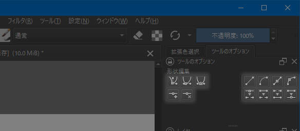 上図のように(形状編集ツールを選択中は)ツールのオプションパネルにパスを編集するための様々なボタンが表示されます。