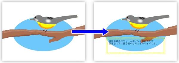 枝に止まるキセキレイを描き終え、残るは "説明文" のみとなりました。 この節では最後の素材である "説明文" を作ります。